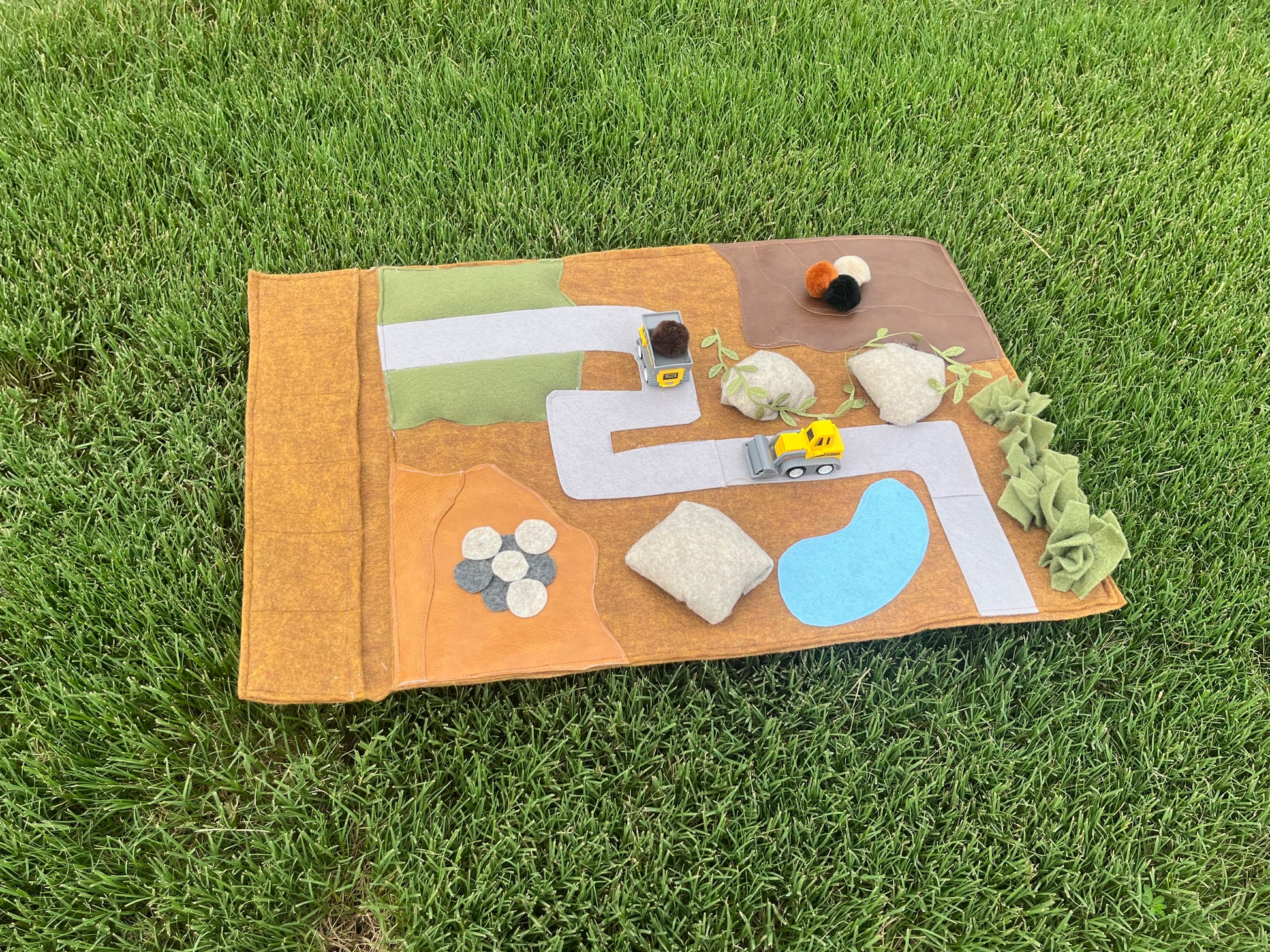 Construction Felt On the Go Play mat. Mat measurements: 20x13
